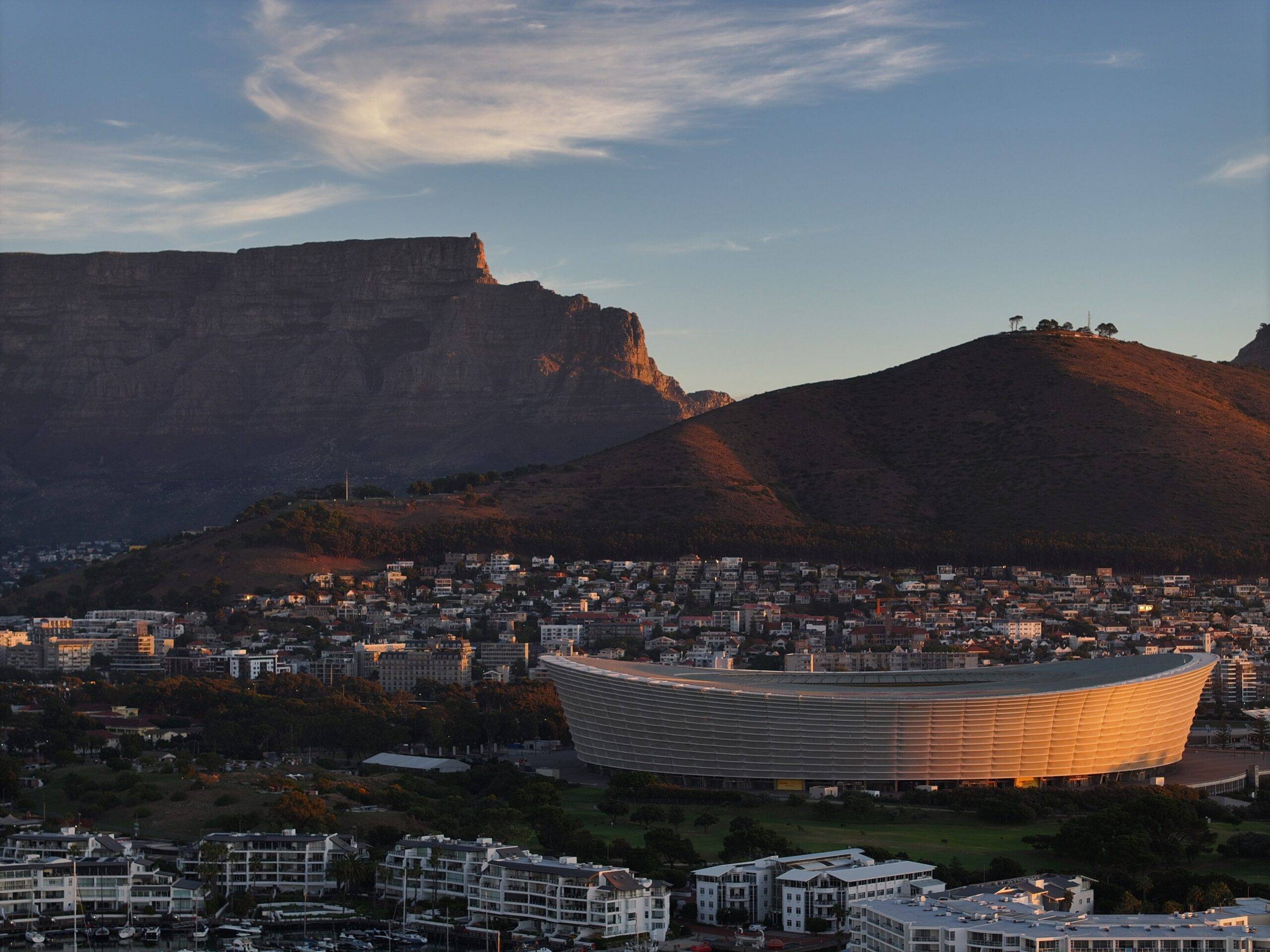 A curated pack of aerial shots of the Cape Town CBD and shots of Table Mountain.